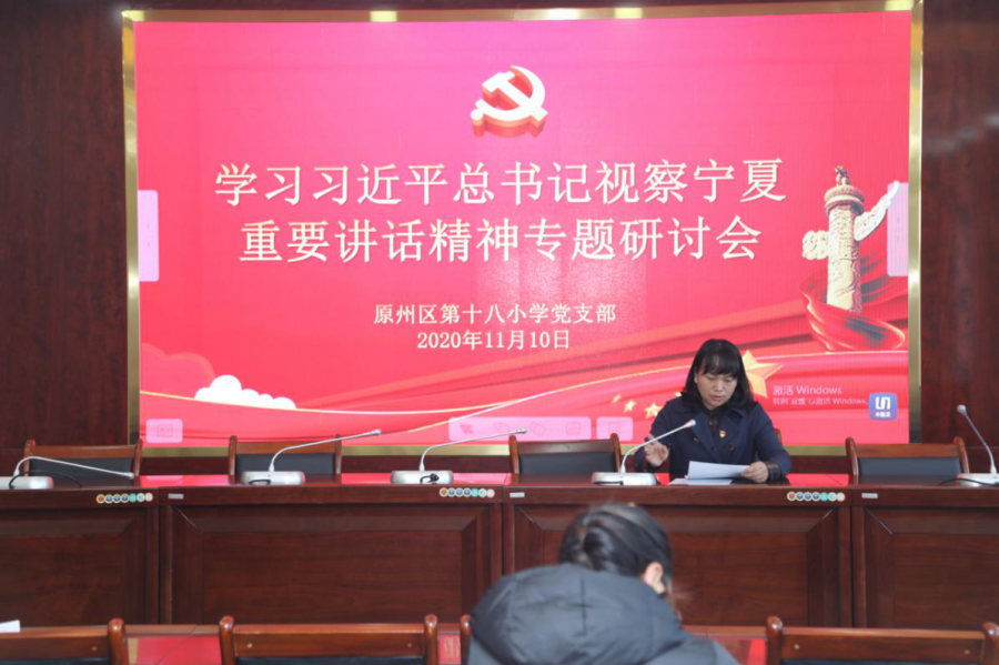 为切实把总书记视察宁夏重要讲话精神转化为推动教育高质量发展的强大动力,转化为教育改革发展的科学思路,转化为提高教育教学质量的有效举措,转化为推动校园治理体系和治理能力现代化的行动路径。11月10日上午,原州区第十八小学组织全体党员教师开展学习习近平总书记视察宁夏讲话精神专题研讨会。