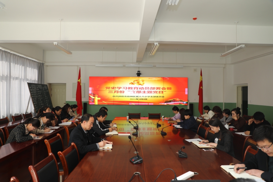 为深入贯彻习近平总书记在党史学习教育动员大会上的重要讲话精神,认真落实原州区教育工委 教体局党组关于在全区教育体育系统开展党史学习教育的指示精神。3月8日下午,学校党支部组织全体党员教师召开党史学习教育动员部署会暨三月份“支部主题党日”。