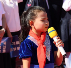 全校同学用铿锵有力的声音承诺:新时代,红领巾永远跟党走;新征程,红领巾相约中国梦。我们有志向、有梦想;我们爱学习、爱劳动;我们懂感恩、懂友善;我们敢创新、敢奋斗;我们时刻准备着!我们不怕困难,不怕敌人,向着胜利勇敢前进、前进、前进!