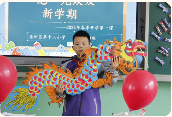 “瑞龙添鳞,欣欣向“龙”。同学们将新学期的心愿粘贴在龙鳞上, 每一片龙鳞都承载着美好的祝愿,希望的种子在这一刻生根发芽,愿新学期爱与美好如约而至。