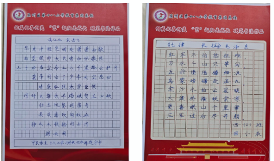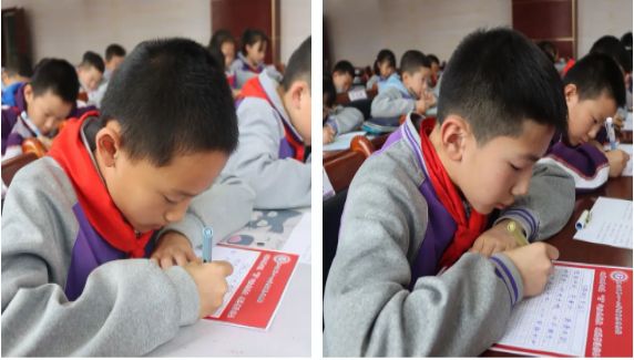 横如列阵排云,直如倒笋垂露,点如危峰卵石,牵如万岁枯藤,纵如行云流水。同学们屏息凝神,专心致志,将情思诉于笔端,流于线条。或曲折笔直,或方正圆润,一撇一捺,尽显品性,无不传递“写一笔工工整整的方块字,做一个堂堂正正的中国人”的信念。