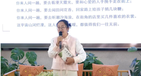 教师读书分享结束后,特邀嘉宾固原市作协副主席高丽君老师对老师们能够静下心来读书的精神表示高度赞扬。她对每一组分享进行专业化点评,让每一位参与者如沐春风。她还亲切地与青年教师代表就读书、写作的疑惑,以及专业成长的困惑与如何突破瓶颈交换了意见,大家受益匪浅。